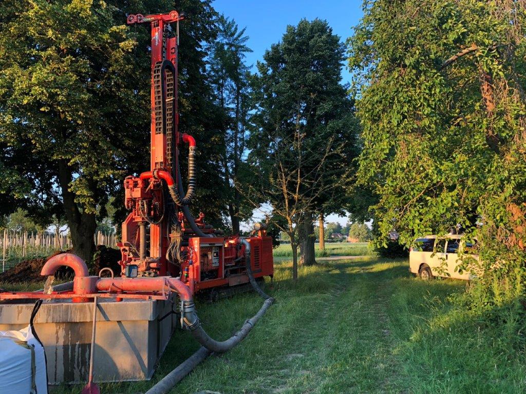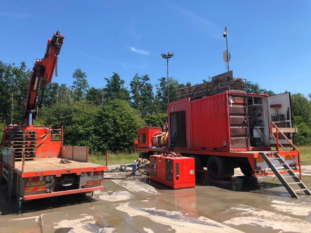 De Conrad Boxer 200 is een krachtige compacte en zeer wendbare boormachine op een rups onderstel. Deze uiterst moderne boormachine wordt bijna volledig radiografisch bediend, en laat zich door de compacte afmetingen goed manoeuvreren in moeilijk begaanbaar terrein, en in krappe omgevingen. Onze Conrad Boxer 200 is ingericht voor het zuigboren, luchtliften en spoelboren. Het boorgat kan worden d.m.v. zuigboren/luchtliften geboord tot maximaal 214 meter, met een diameter van 650mm. Deze machine is ook uitgevoerd met een stangen manipulator, om snel en makkelijk te boren. De boormachine weegt met boorstangen 16500 kilo. Vanzelfsprekend is onze machine uitgevoerd met een vonkenvanger.